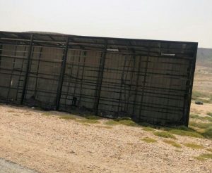 مسلحون قبليون يحرقون كرفانات عسكرية سعودية في منفذ شحن الحدودي”صور”