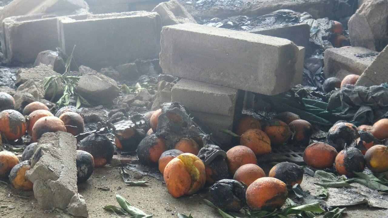 مسؤول أمني أكد أن السوق التجاري الخاص بالخضروات لحق به أضراراً كبيرة في محلات التعبئة والتصدير التابعة للمواطنين بالإضافة الى تضرر مسجد مجاور له .