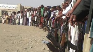 بالصور: استنكارا لمشاركة حكومة هادي في مؤتمر وارسوا قبائل ريمه ينظمون وقفة احتجاجية