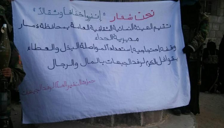 محافظة ذمار هي الأخرى لبت نداء الواجب حيث أكد محافظ المحافظة / محمد حسين المقدشي في تدشين حملة التجنيد التطوعي في القوات المسلحة بمديريات المحافظة على ضرورة تكاتف الجهود من أجل الحشد والتعبئة للتنجيد الطوعي في قرى وعزل مديريات المحافظة وبما يسهم في رفد الجبهات بالرجال للدفاع عن الوطن وصد الغزاة والمحتلين وإفشال مخططاتهم.