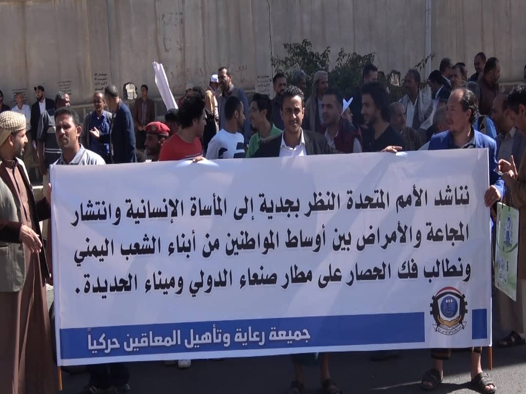 ودعا المشاركون في المسيرة، المجتمع الدولي الاضطلاع بمسئوليته تجاه معاناة الشعب اليمني الذي يتعرض لحرب وحصار جائرين.