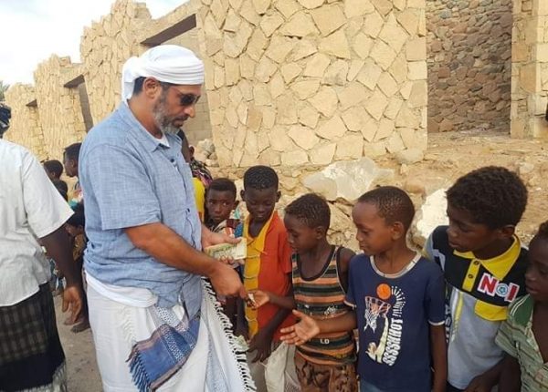 ونشر “بلحاف” صورة على فيسبوك، تظهر مندوب القوات الإماراتية في جزيرة سقطرى، الملقب “بالمرزوقي” وهو يقوم بتوزيع مبالغ زهيدة على الأطفال متباهياً بنشر صورهم في هذه الحالة المهينة.