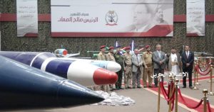 وتعرض الصور نماذج من الأسلحة اليمنية الجديدة وهي ” صاروخ قدس 1 المجنح وطائرة صماد 3 المسيرة وطائرة صماد 1 المسيرة الاستطلاعية وطائرة قاصف 2k المسيرة “