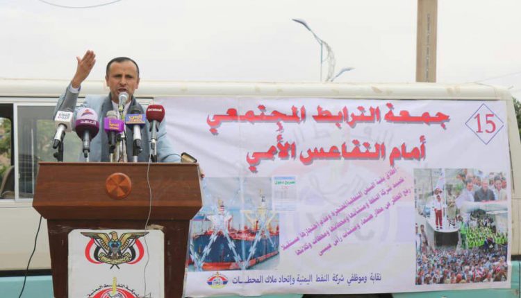 موضحا أن إطلاق سفن المشتقات النفطية قضية أساسية لكل أبناء الشعب اليمني، يتطلب تعاون كل أبناء المجتمع، والوقوف جنباً إلى جنب لمواجهة الانتهاكات والتعسفات المستمرة من دول التحالف.
