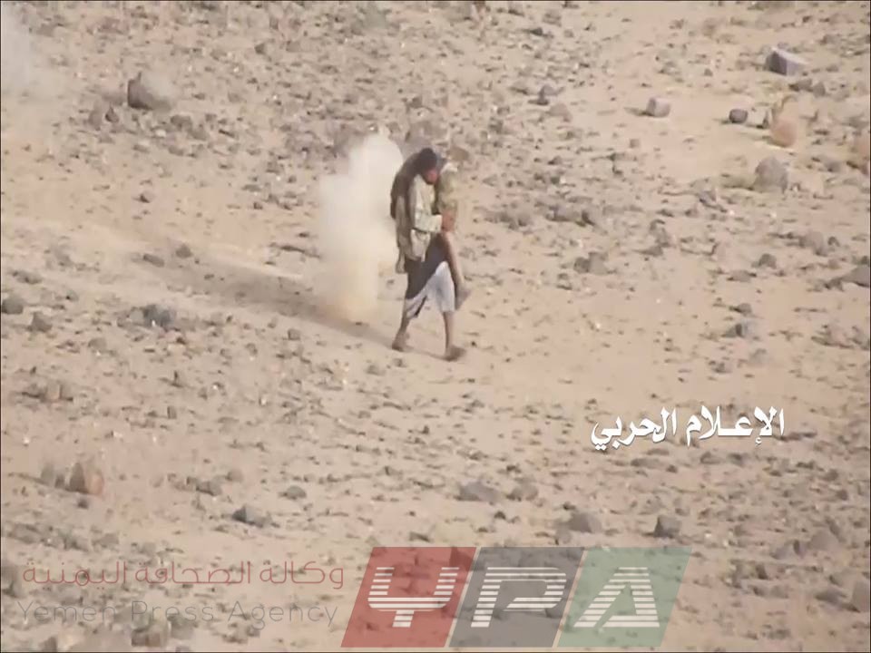 ويظهر المشهد عملية انقاذ بطولية نفذها أحد أبطال الجيش واللجان الشعبية وهو يحمل زميله الجريح وسط مواجهات عنيفة واستهداف مباشر له بكافة أنواع الأسلحة الرشاشة والقناصة التابعة للمسلحين.