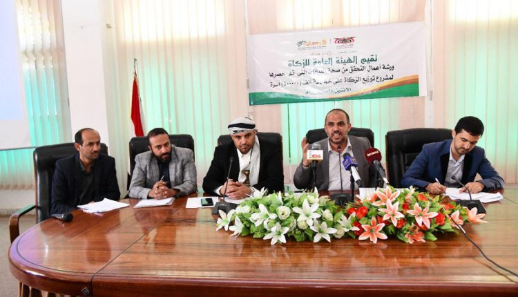 عقدت بصنعاء اليوم الإثنين ، ورشة خاصة بأعمال التحقق من صحة بيانات الحصر في نطاق أمانة العاصمة لمشروع توزع الزكاة لـ 500 ألف أسرة من الفقراء والمساكين نظمتها الهيئة العامة للزكاة.