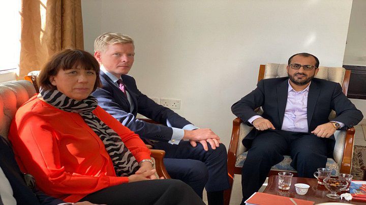 وذكر محمد عبد السلام في بيان له أنه ناقش مع سفير الاتحاد الأوروبي وسفيرة مملكة هولندا لدى اليمن في لقاء بسلطنة عمان كافة المستجدات السياسية والإنسانية وسبل الدعم الأوروبي الإنساني والسياسي للسلام في اليمن.