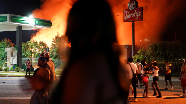 واندلعت الاضطرابات بعد حلول الظلام في أتلانتا، عاصمة ولاية جورجيا، حيث أعلنت رئيسة بلدية المدينة، كيشا لانس بوتمس، في وقت سابق، أنها قبلت الاستقالة الفورية لقائدة شرطة المدينة، إريكا شيلدز، بعد وفاة ريشارد بروكس (27 عاما) مساء الجمعة، في أحد مطاعم سلسلة “وينديز” للوجبات السريعة.