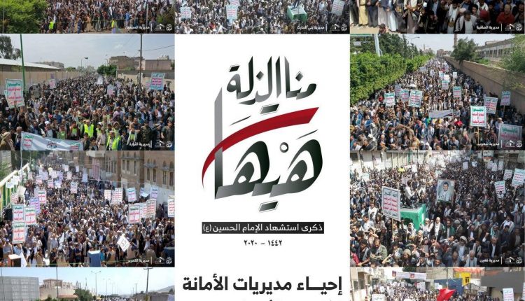 وعلق الناطق الرسمي لأنصارالله الأستاذ محمد عبدالسلام قائلا: “في يوم #كربلاء وعلى خطى #الإمام_الحسين عليه السلام وقف الشعب اليمني بقيادته المباركة متمثلاً ذلك الموقف الحسيني في مواجهة طغاة العصر وهو موقف ينتصر للإسلام وللقرآن، وبهما يتحقق للأمة ما تصبو إليه من عزة وكرامة”.