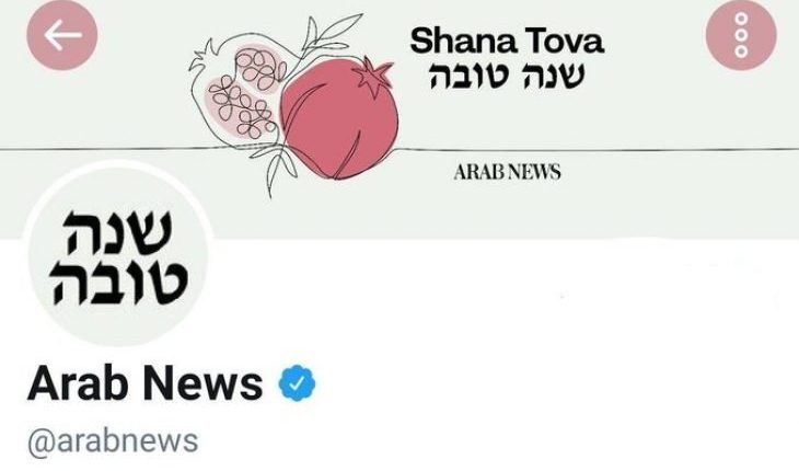 غيرت صحيفة “عرب نيوز” السعودية صورة البروفايل وصورة غلافها على موقع تويتر إلى صور تحتوي عبارة “شانا توفا” (سنة سعيدة بالعبرية)، وهو الأمر الذي أثار إعجاب وزارة الخارجية الإسرائيلية على ما يبدو.