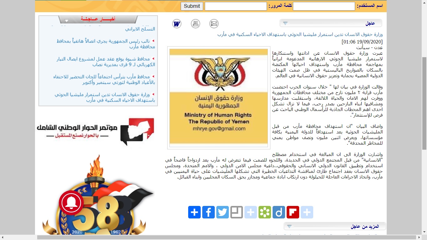 ودعت “حكومة هادي” في بيان لها من الرياض، ليل السبت، “الأمم المتحدة ومجلس الأمن الدولي ومجلس حقوق الإنسان التابعين لها إلى عقد اجتماع طارئ لمناقشة التداعيات الخطيرة التي تشكلها المليشيات على حياة اليمنيين في مأرب” حسب زعمها.