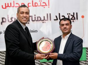 وعقب ذلك قام رئيس الاتحاد عبدالستار الهمداني ونائبه الدكتور محمد حسن عبده الشيخ وأعضاء الاتحاد بتكريم وكيل أول وزارة الشباب والرياضة عبدالحكيم الضحياني ووكيل الوزارة المساعد لقطاع الرياضة كمال الشريف بدرعي الاتحاد تقديراً وعرفاناً بالجهود التي بذلوها مع الاتحاد.