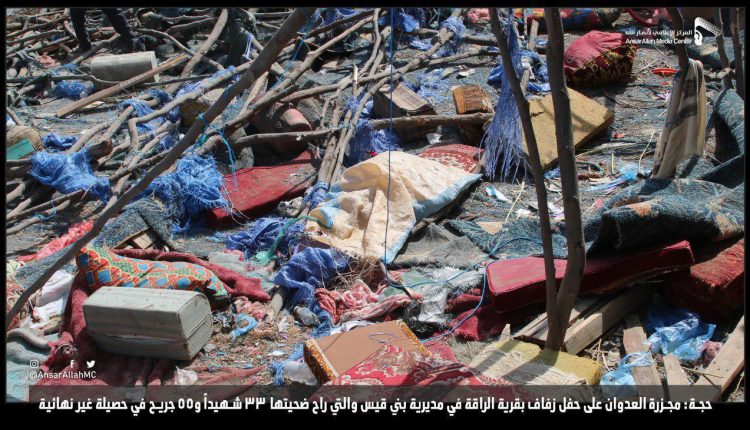 صور توثق جريمة التحالف التي حولت حفل زفاف إلى عزاء في حجة: 88 قتيل وجريح في حصيلة غير نهائية