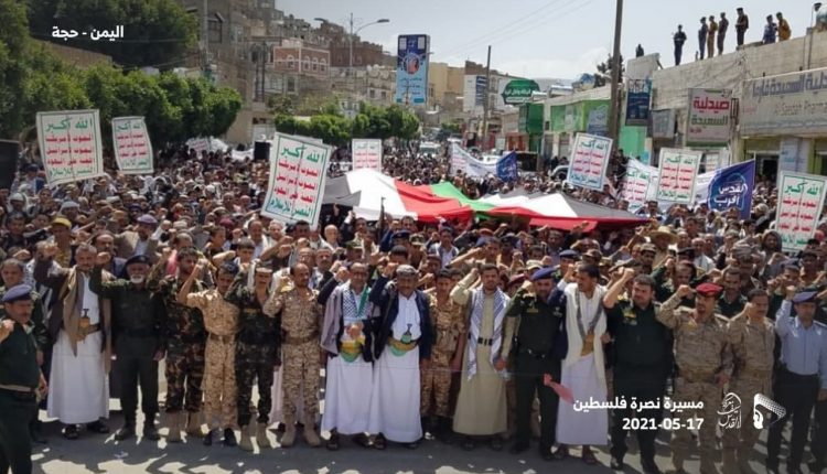 مسيرة حاشدة في محافظة حجة نصرة للأقصى الشريف وفلسطين المحتلة