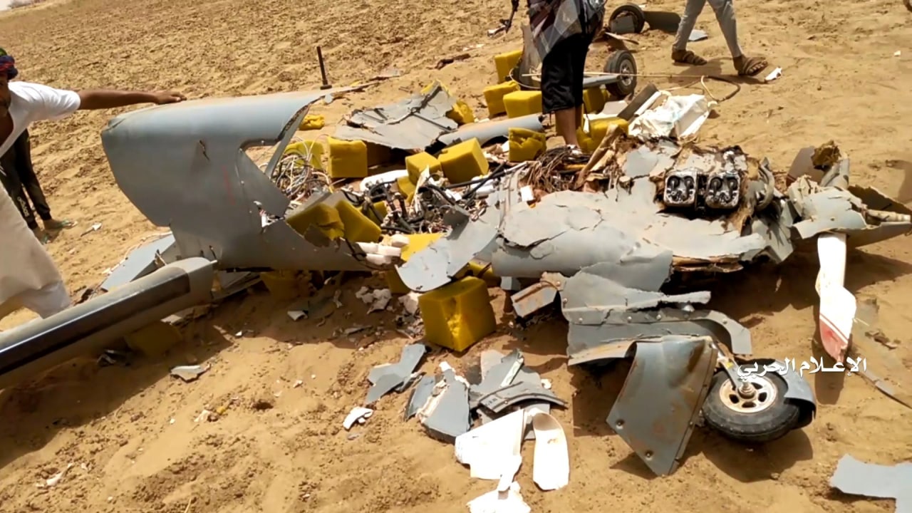 بثث قوات صنعاء عصر اليوم الأحد ، مشاهد لحطام طائرة ” كاريال” التجسسية المقاتلة التي تم اسقاطها بمديرية حيران في محافظة حجة شمال اليمن.