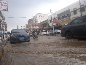 شهدت العاصمة صنعاء ظهر اليوم الاثنين أمطار وسيول عمت معظم شوارع مديريات الامانة العشر.