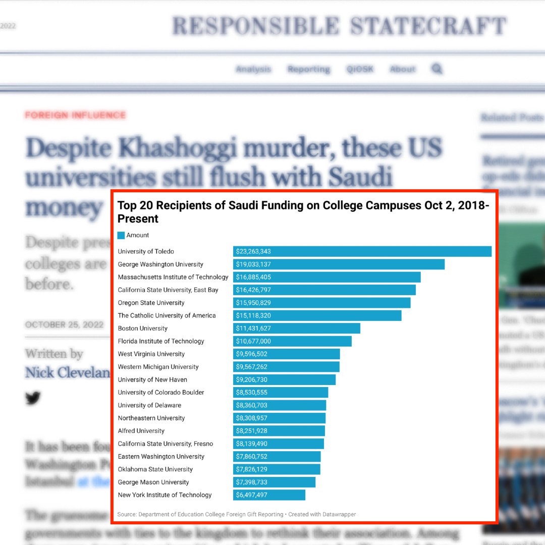 الكشف عن منح السعودية 144جامعة أمريكية 440 مليون دولار لطمس قتل خاشقجي