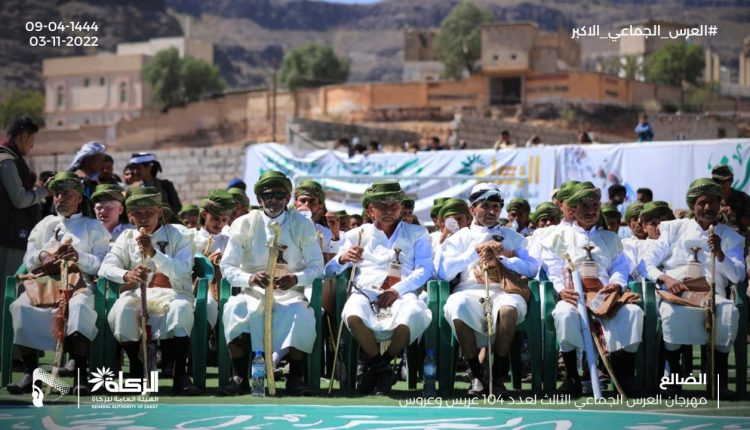 أقيم في مديرية دمت بمحافظة الضالع، اليوم، العرس الجماعي الثالث لعدد 104 عرسان وعرائس من أبناء المحافظة بدعم من الهيئة العامة للزكاة.