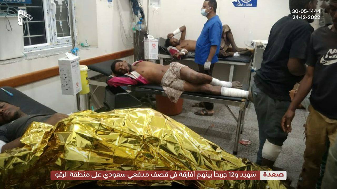 حصلت وكالة الصحافة اليمنية ، على صورة توثق الجريمة التي ارتكبتها السعودية بقصف مدفعي أمس الجمعة بحق المدنيين في منطقة الرقو بمديرية منبه الحدودية في محافظة صعدة والتي اسفرت عن سقوط قتيل و 12 جريح بينهم مهاجرين أفارقة.