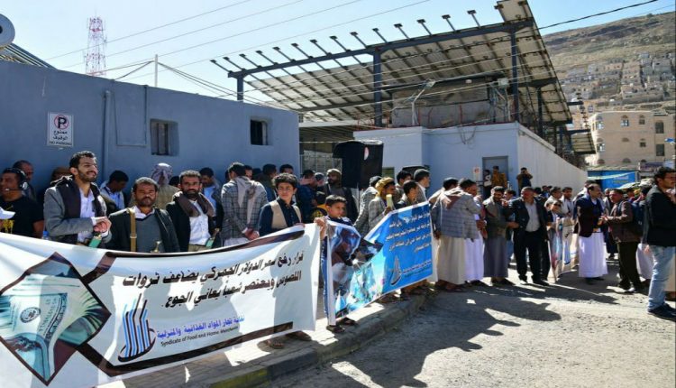 واستنكر التجار المشاركون في الوقفة هذا القرار والذي يأتي في إطار الحرب العدوانية والحصار الاقتصادي والتجاري على الشعب اليمني.