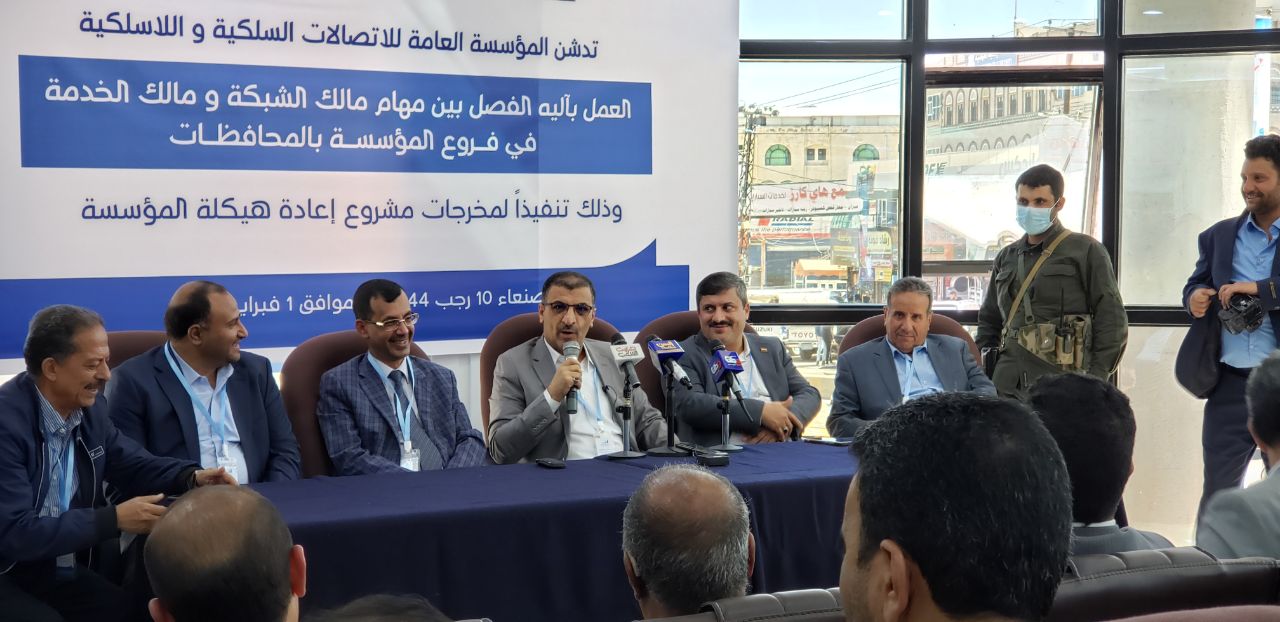 فيما أوضح المدير العام التنفيذي للمؤسسة العامة للاتصالات المهندس صادق مصلح، أن الهدف من الفصل بين مهام مالك الشبكة والخدمة في أمانة العاصمة والمحافظات، يتمثل في معالجة المعوقات التي تعترض المشتركين لخدمات الاتصالات.