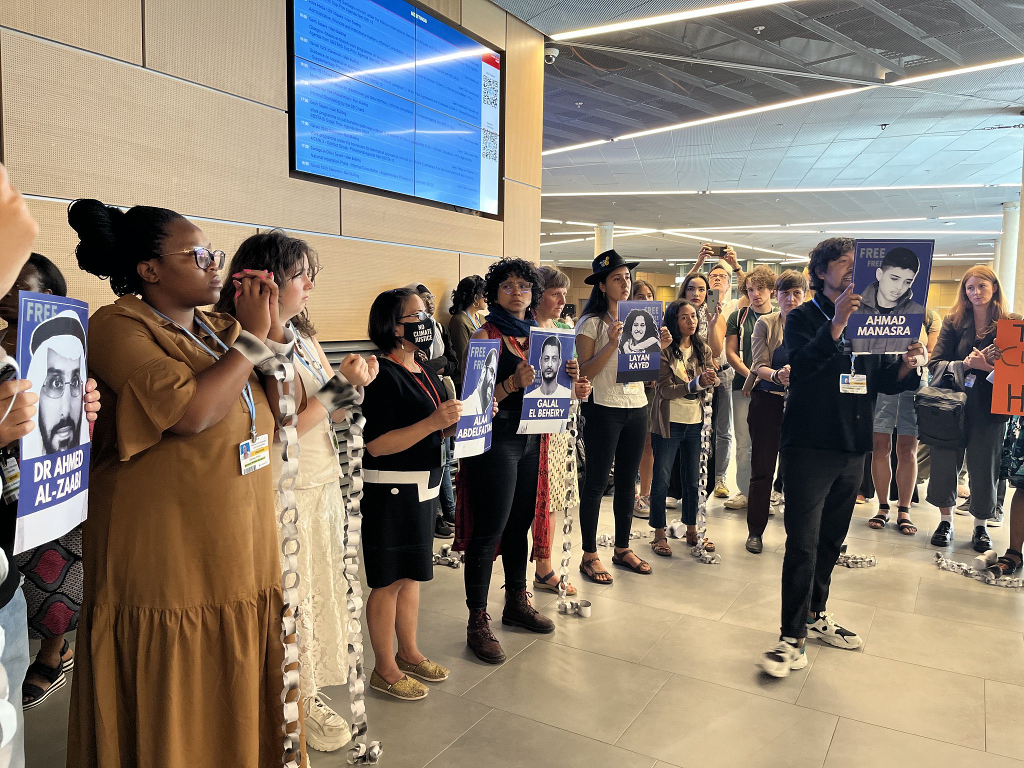 وتضمنت دعوات منظمة العفو الدولية التخلص التدريجي الكامل والسريع والعادل من الوقود الأحفوري، فضلًا عن حماية الحيز المدني العلني في اجتماعات المناخ.