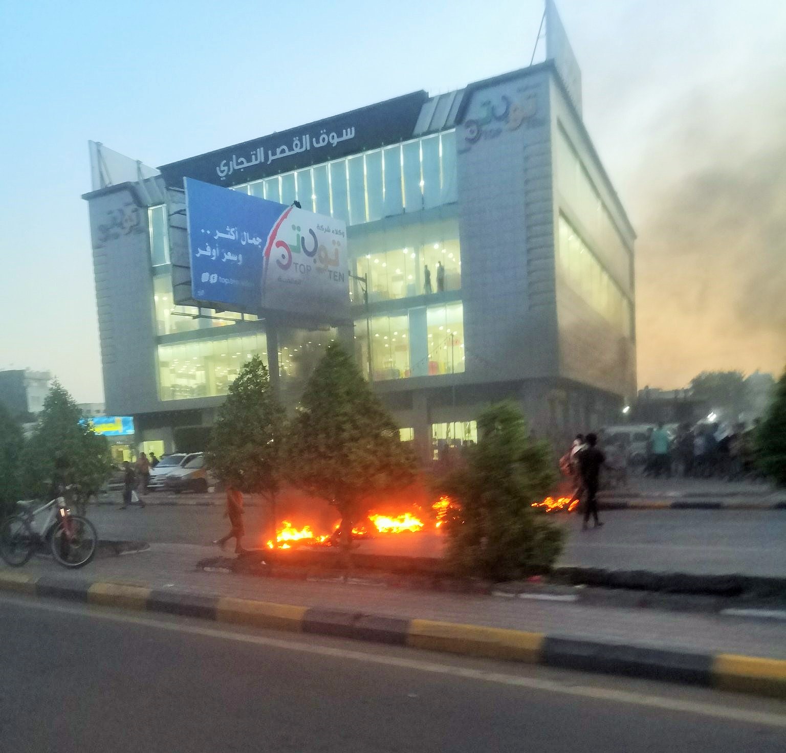 وقطع المحتجون الغاضبون الشوارع الرئيسية في منطقة المنصورة بالإطارات المشتعلة والأحجار احتجاجا على انهيار خدمات الكهرباء وارتفاع الأسعار جراء تدهور العملة المحلية التي وصل فيها سعر الدولار إلى 1700 ريال.