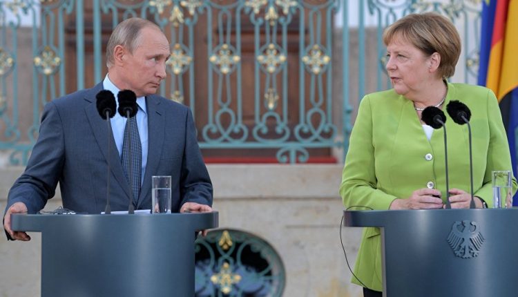 برلين(وكالة الصحافة اليمنية)- بحث الرئيس الروسي فلاديمير بوتين، والمستشارة الألمانية أنغيلا ميركل الملف السوري بشكل مفصل، بالإضافة للشكل الشامل للتسوية في سوريا.