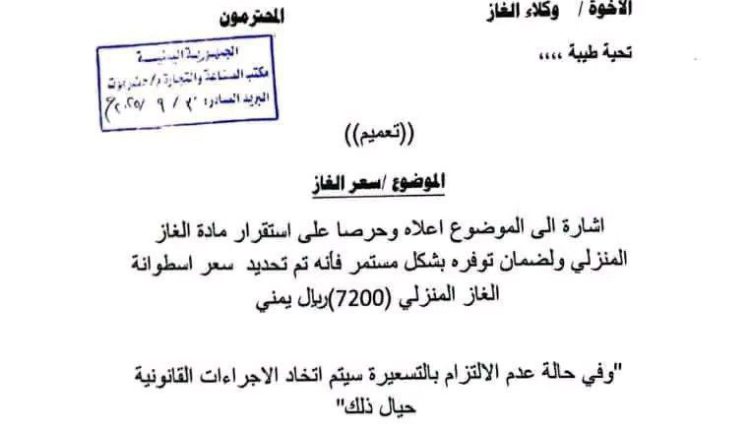 وجاء قرار رفع سعر أسطوانات بيع الغاز المنزلي من مبلغ 6300 ريال، إلى 7200 ريال، بعد أيام من إضراب نفذه وكلاء الغاز، تسبب في أزمة حادة بين المواطنين، وصل سعر الاسطوانة 7500 ريال.