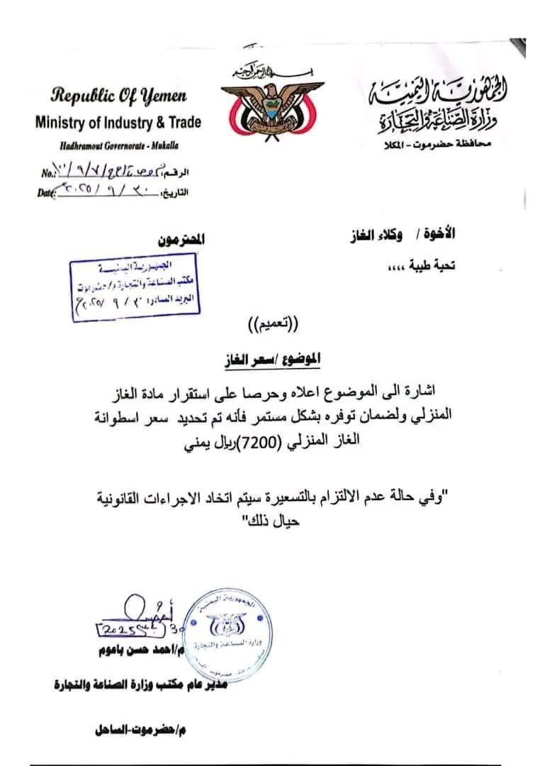 فرضت السلطات التابعة للتحالف في محافظة حضرموت، جرعة جديدة في أسعار الغاز المنزلي، استجابة لوكلاء توزيع الغاز، وسط تجاهلها لمطالب المعلمين الذين يواصلون إضرابهم منذ بداية العام الدراسي للمطالبة بتحسين أوضاعهم المعيشية.