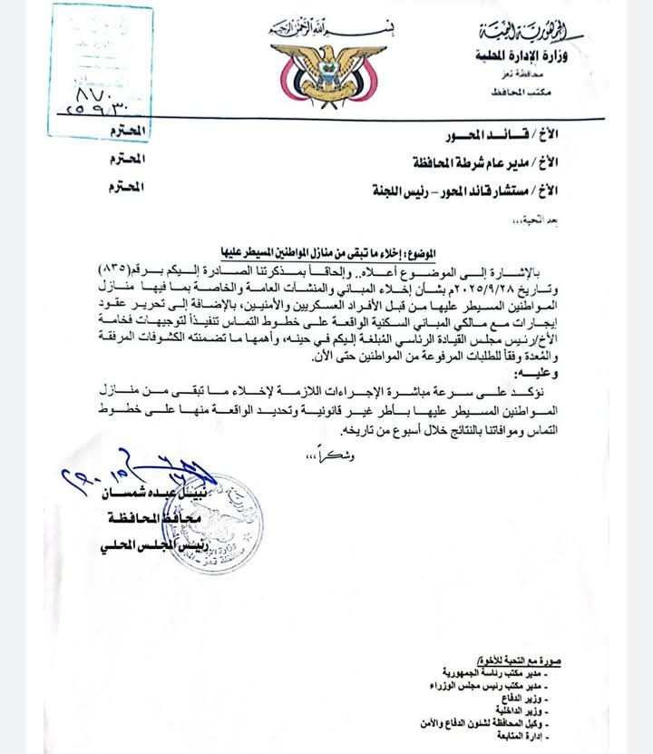 العودة إلى "وثيقة تكشف فضيحة غير مسبوقة عن سلطات التحالف في تعز" وثيقة محافظ تعز نبيل شمسان تكشف فضيحة التستر على العصابات المسلحة التالي السابق