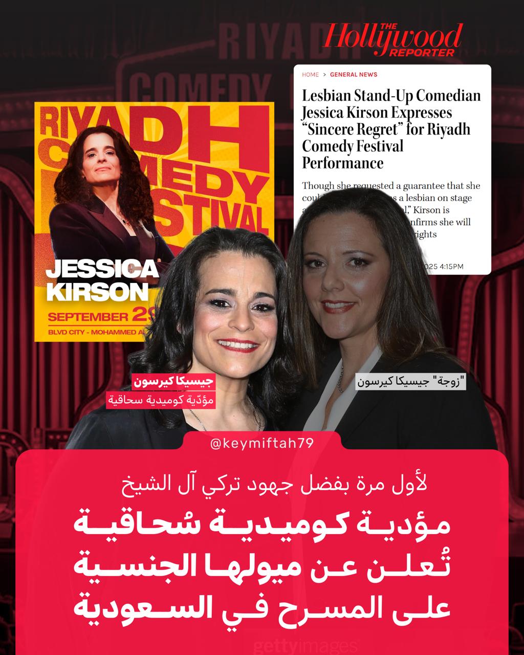 المؤدية الكوميدية السُحـ.ـاقية جيسيكا كيرسون شاركت مؤخرًا في مهرجان الرياض للكوميديا واشترطت التصريح علنًا عن شـ.ـذوذها على المسرح.