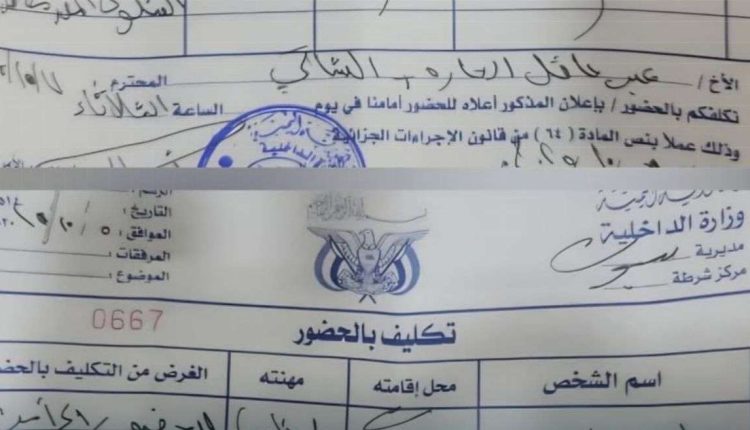 وشمل الاستدعاء المراسلين عبدالله مؤمن، حداد مسيعد، وعبدالمجيد باخريصة، العاملين لقنوات “يمن شباب”، “بلقيس”، و”المهرية”، في وادي حضرموت.