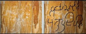 وأشار إلى أن هؤلاء الزوار، الذين نحتوا أسمائهم في الكهف “محمد الشيبة، محمد العنسي”، قاموا بالعبث بالآثار، مؤكدا أن “من زار الكهف سيجد أمثالهم الكثير”.
