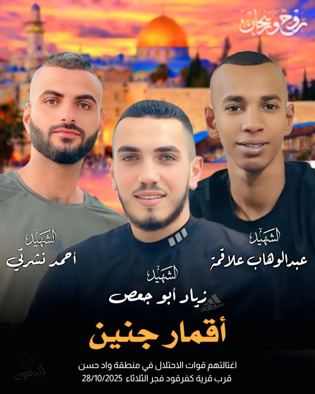 فتح الانتفاضة تدين اغتيال ثلاثة شبان في جنين وتعتبره استمرارًا لسياسة الاحتلال القمعية