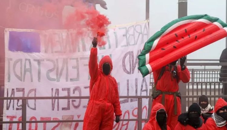 قيّد عدد من الناشطين في ألمانيا أنفسهم بخط سكة حديدية احتجاجا على تصدير بلادهم الأسلحة إلى “إسرائيل”، وللفت الأنظار إلى معاناة المدنيين الفلسطينيين في قطاع غزة.