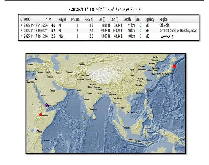 سجلت محطات مركز رصد ودراسة الزلازل والبراكين، في ذمار، هزة أرضية جديدة جنوب محافظة الحديدة غربي اليمن.