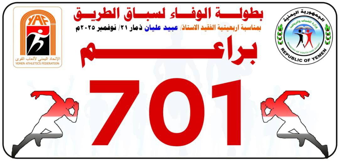 تنطلق على استاد ذمار الدولي بعد غد الجمعة بطولة الوفاء لسباق الطريق الذي ينظمه الاتحاد العام لألعاب القوى، برعاية نائب وزير الشباب والرياضة نبيه ناصر ومحافظ ذمار محمد البخيتي، وتمويل صندوق رعاية النشء والشباب، بمناسبة أربعينية الفقيد عبيد عليان الأمين العام للاتحاد.
