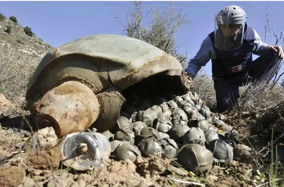 وتنتشر الذخائر العنقودية على مساحات واسعة وتخلّف عدداً كبيراً من القنيبلات الصغيرة، إلا أن الخبراء يحذّرون من أن نسبة كبيرة من هذه القنيبلات قد لا تنفجر لحظة سقوطها، ما يجعلها تهديداً طويل الأمد للمدنيين.
