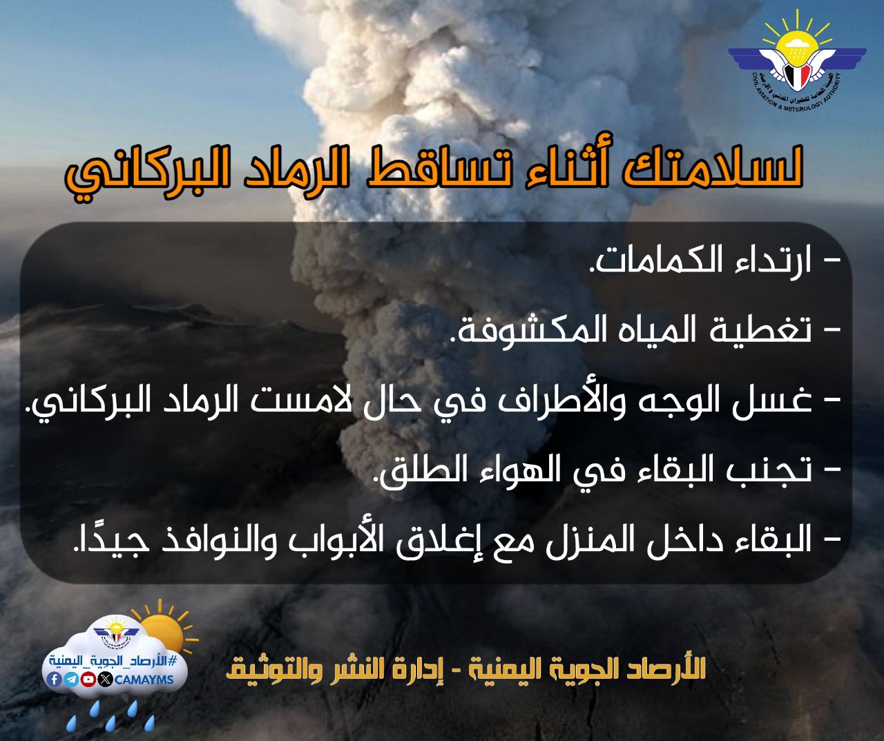 الأرصاد يكشف مستجدات الرماد البركاني واسع الانتشار ويطلق تحذيرات ونصائح هامة للمواطنين