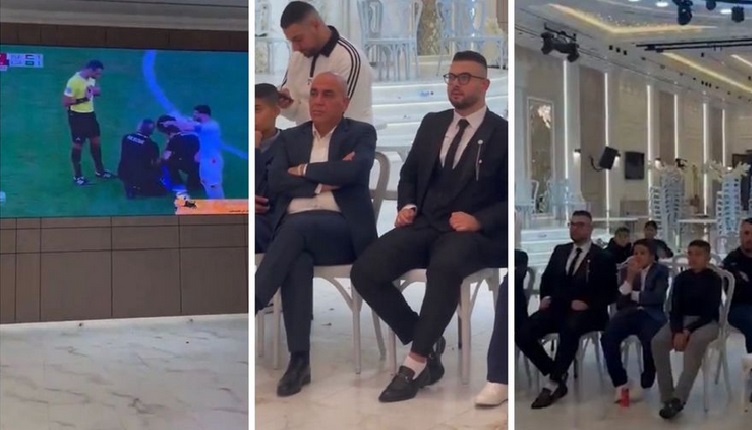 عريس فلسطيني تابع مباراة منتخب بلاده في كأس العرب من قاعة الفرح