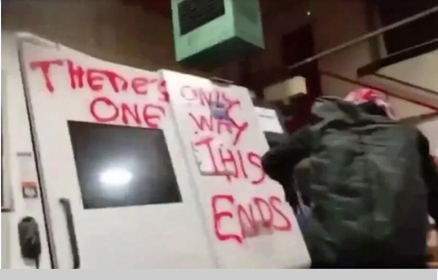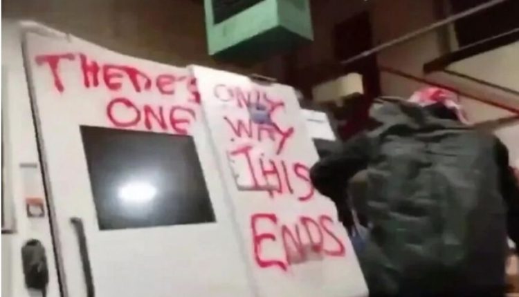 ووفقا للصحيفة، ترك الناشطون بعد أعمال التخريب التي نفذوها باستخدام المطارق، رسومات على الجدران كتب عليها: “هذه هي الطريقة الوحيدة لإنهاء الأمر”.