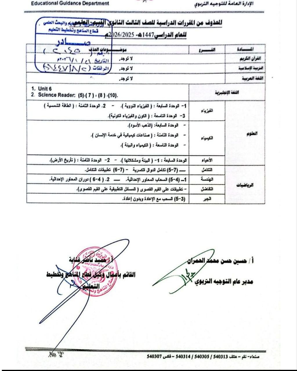 العودة إلى "وزارة التربية في صنعاء تنشر تعميما مهما لطلاب الشهادتين الأساسية والثانوية “صور”" المحذوفات من المقررات الدراسية لطلاب المرحلة الأساسية والثانوية 0 السابق