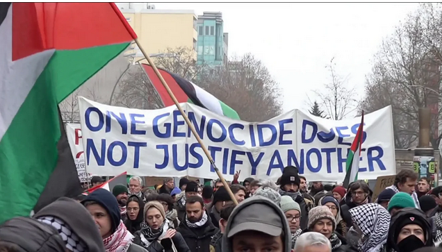 وردد المتظاهرون شعارات تنتقد استمرار الحكومة الألمانية في تصدير الأسلحة إلى “إسرائيل”، كما أشاروا إلى شركات ألمانية تعمل في مجال الصناعات العسكرية ولديها مشاريع مشتركة مع شركات “إسرائيلية”، معتبرين أن هذا التعاون يشكّل مشاركة غير مباشرة في الحرب على غزة.