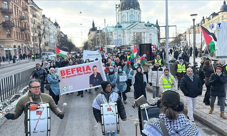 وتجمع مئات من مؤيدي القضية الفلسطينية في ساحة أودنبلان وسط ستوكهولم، بدعوة من منظمات المجتمع المدني.
