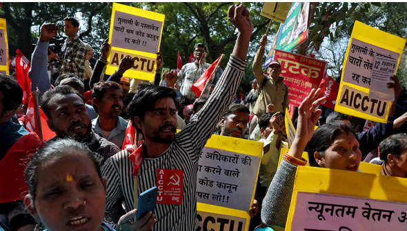نظم ائتلاف يضم نقابات عمالية كبرى وجماعات للمزارعين في الهند، إضرابًا عامًا، اليوم الخميس، احتجاجًا على اتفاق تجاري مؤقت مع الولايات المتحدة، حيث قالوا إن الاتفاق يقوض مصالح المزارعين وأصحاب الأعمال الصغيرة والعمال.