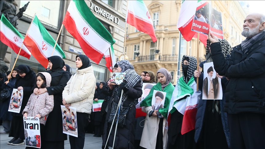 شهدت العاصمة النمساوية فيينا، الأحد، مظاهرة للتنديد بالهجمات التي تشنها الولايات المتحدة والاحتلال الإسرائيلي على إيران.