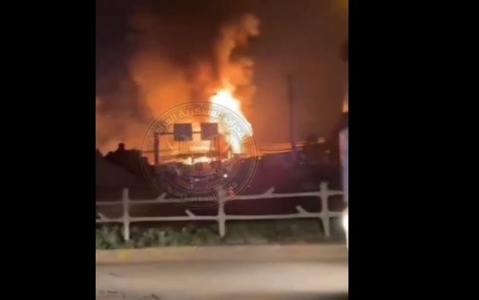 وتُظهر المشاهد ألسنة لهب تتصاعد من أحد المواقع داخل القاعدة، وسط سماع دوي انفجارات متتالية.