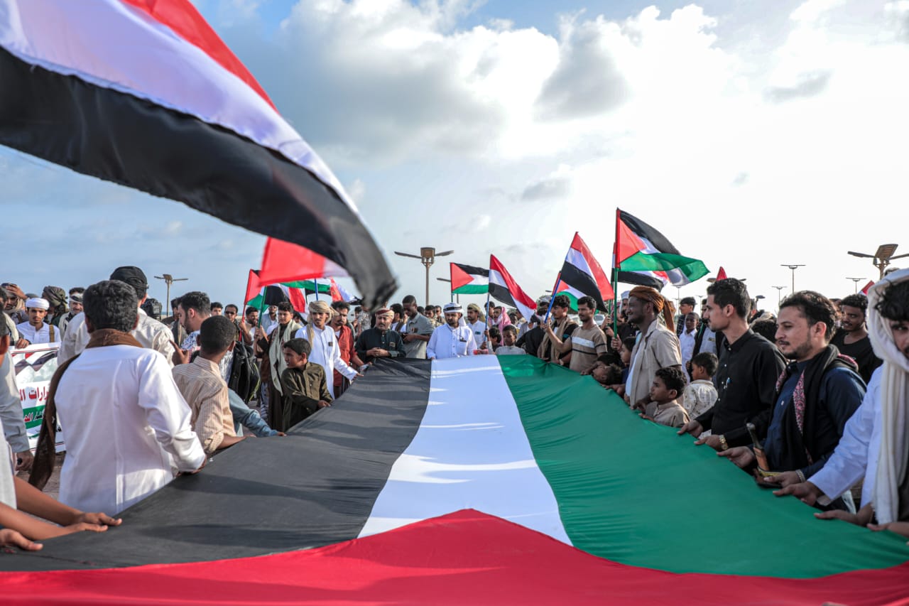 نظم أبناء محافظة المهرة شرقي اليمن، اليوم الجمعة، وقفة احتجاجية تنديدا باستمرار الجرائم والانتهاكات الإسرائيلية ضد الشعب الفلسطيني، في ظل تصاعد التوتر عقب إقرار قانون “إعدام الأسرى” وإغلاق المسجد الأقصى.