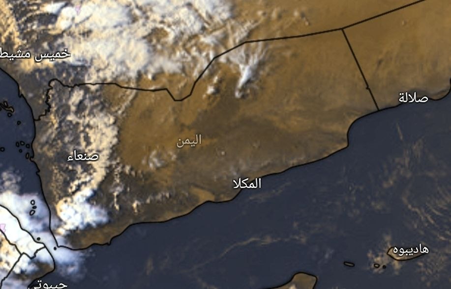 أجواء غائمة جزئياً إلى غائمة مع هطول أمطار متفاوتة الشدة على اجزاء من سهـل تهامـة والساحل الغربي، وأمطار خفيفة على اجزاء من السواحل الجنوبية والشرقية، أجواء حارة على سهل تهامة حيث تتراوح درجات الحرارة العظمى بين (34-37 درجة مئوية) والرياح معتدل إلى نشطة السرعة تعمل على اثارة الاتربة والرمال.